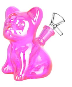 “Take your smoking experience to the next level with this French Bulldog Glass Water Pipe. Now you can enjoy smooth hits and a stylish aesthetic at the same time. Who says you can’t have it all?! (Except maybe your bank account, but we won’t tell.)”