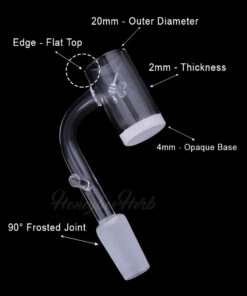 The Honey and Milk Enail Quartz Banger is designed with precision and functionality in mind. With its 20mm outer diameter, 2mm thickness, and 4mm opaque base, this banger allows for excellent heat retention and distribution. The unique feature of the post on the neck sets it apart, providing a convenient spot for hanging your chord when using your favorite Electronic Nail.