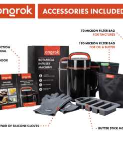 FULL KIT | This useful, ETL-certified infuser comes complete with important features, including 2 nylon filter bags (190, 73 micron), a recipe book, and 2 silicone gummy gloves, so you’re ready to get started making fantastic herbal infusions. All you need to do is press a few buttons.