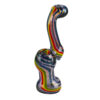 This classic glass bubbler style features fritted glass with a worked rasta color stripe that runs its length. Fill the perc chamber with a small amount of water to cover the end of the downstem and you’ll have great water filtered hits.